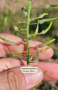 SENAPE BIANCA: alaussa, amareddu jancu, arosene, giuspinu, luchettone, mustarda, rapicello salvatico, rucascina, ruchettone, sanapedda, sanapu, sanva, senaer, senavra, sinapì d’ortu, sinapieddu di linu.