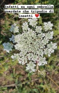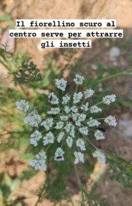 In inglese si chiama wild carrot, bird’s nest, bishop’s lace, and Queen Anne’s lace. Lace significa proprio pizzo o merletto? Non vi sembra un nome più che azzeccato?