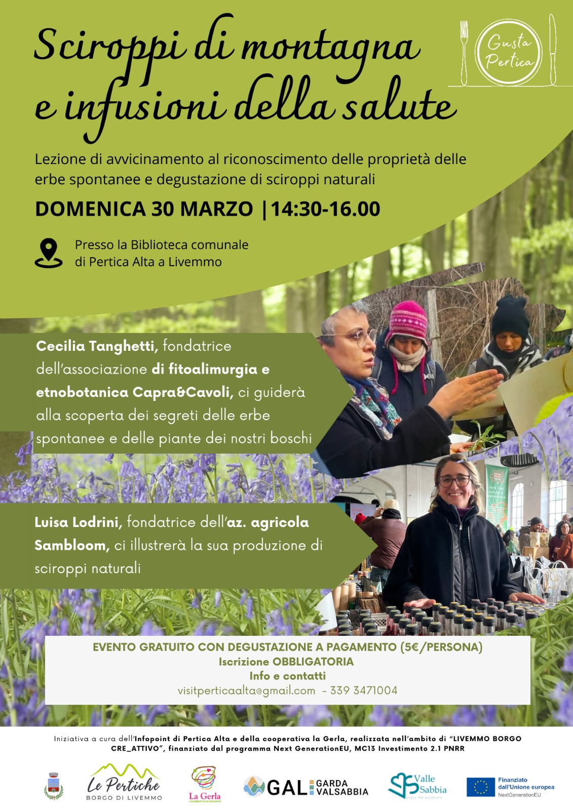 L’infopoint di Pertica Alta vi invita ad una lezione alla scoperta dei segreti delle erbe spontanee e degli sciroppi naturali di montagna.