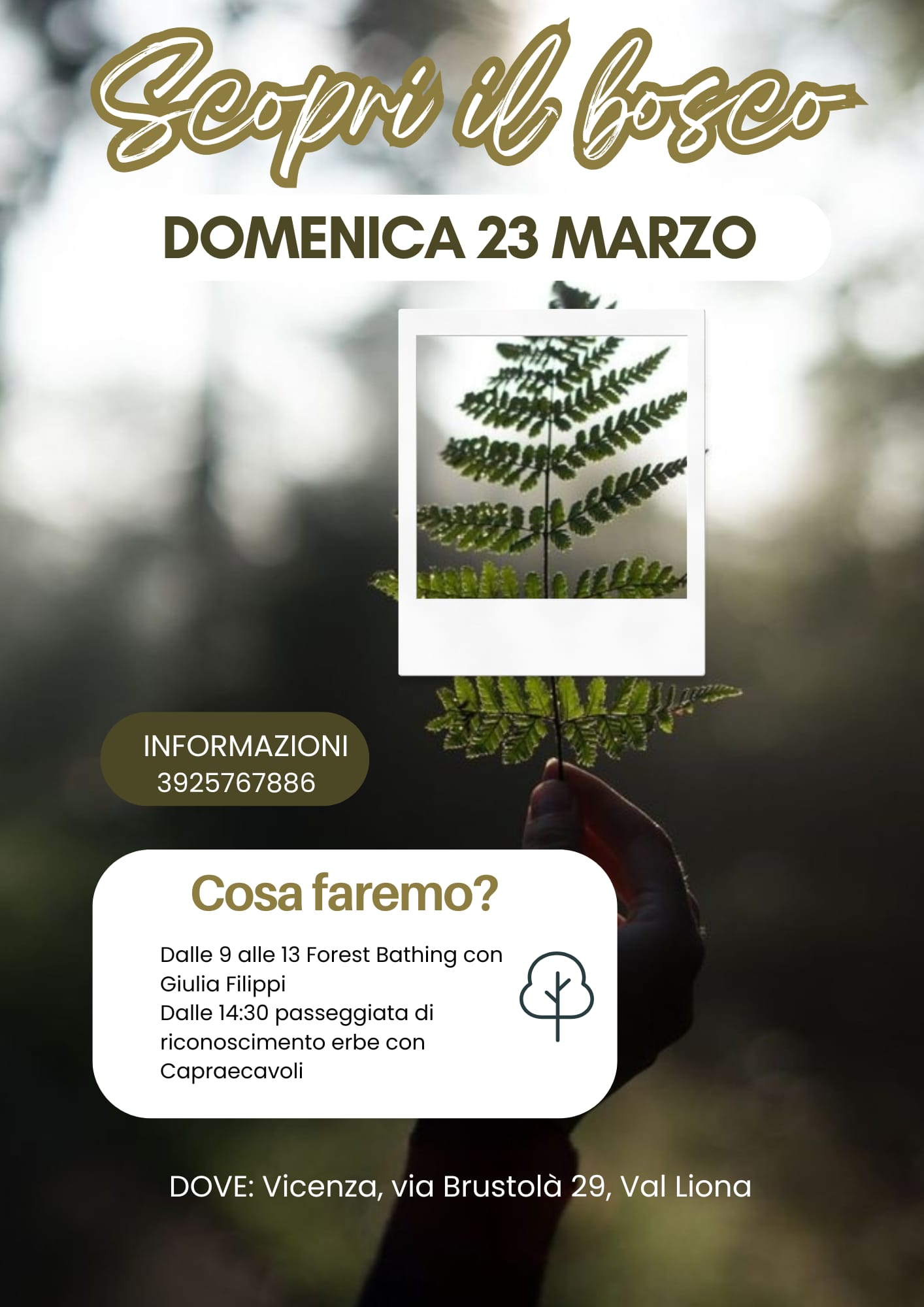 Ore 9: ritrovo. Seguirà bagno di foresta con Giulia Filippi: un’esperienza sensoriale e di benessere proveniente dal Giappone, alla scoperta del bosco e dei suoi elementi.
