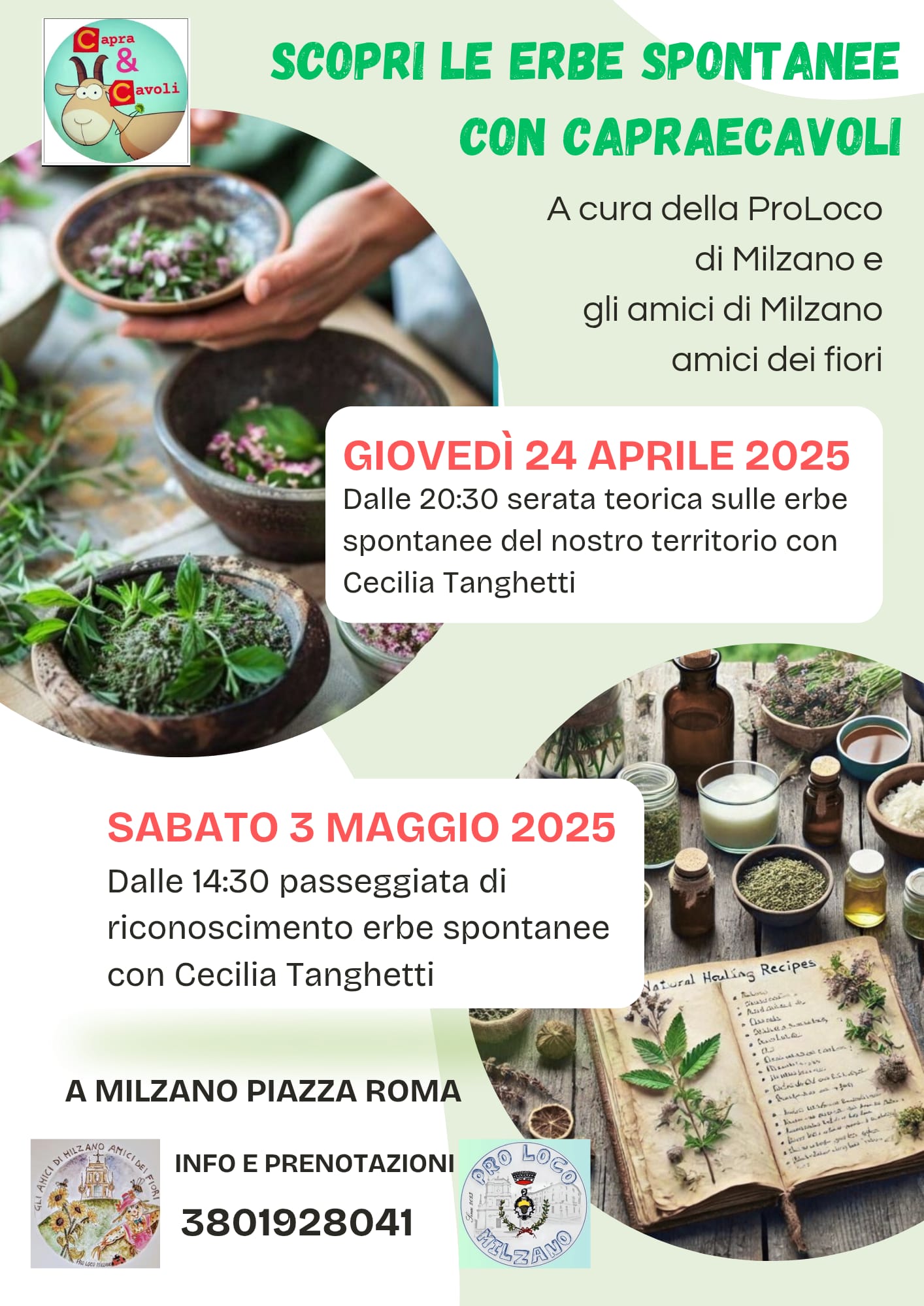 Sabato 3 maggio: dalle 14:30 alle 16:30 passeggiata di riconoscimento erbe con Cecilia Tanghetti dell’Associazione Capraecavoli.